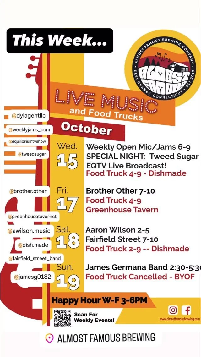Almost Famous Brewing Company is a home for musicians, artists, creatives, and, of course, amazing beer. We take pride in our welcoming atmosphere and amazing performers. Stop by to try one of our in-house, handcrafted beers, customizable, in-house hard seltzers, or to enjoy one of our events. We can't wait to see you!